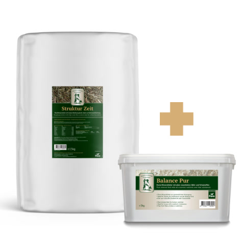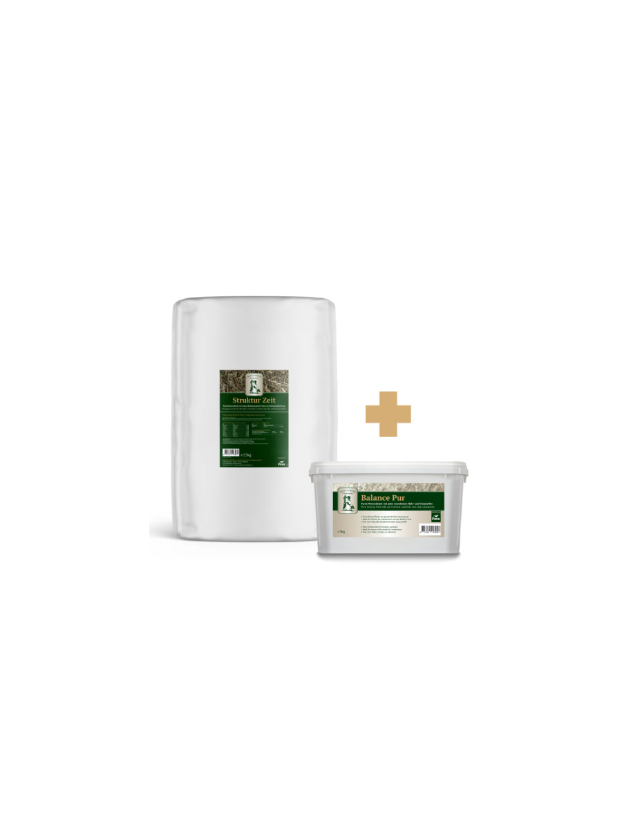 Die grobe, aber weich kaubare Struktur verlängert die Fresszeit, regt die Speichelbildung an und unterstützt so auf natürliche Weise die Verdauung und die Magenfunktion. Gleichzeitig dient Struktur Zeit als kalorienarmes Trägerfutter für Mineralfutter, Balancer oder andere Ergänzungsfuttermittel. Es ist auch ideal auch bei Diätpferden oder zur Beschäftigung, etwa wenn andere Pferde Kraftfutter erhalten.
